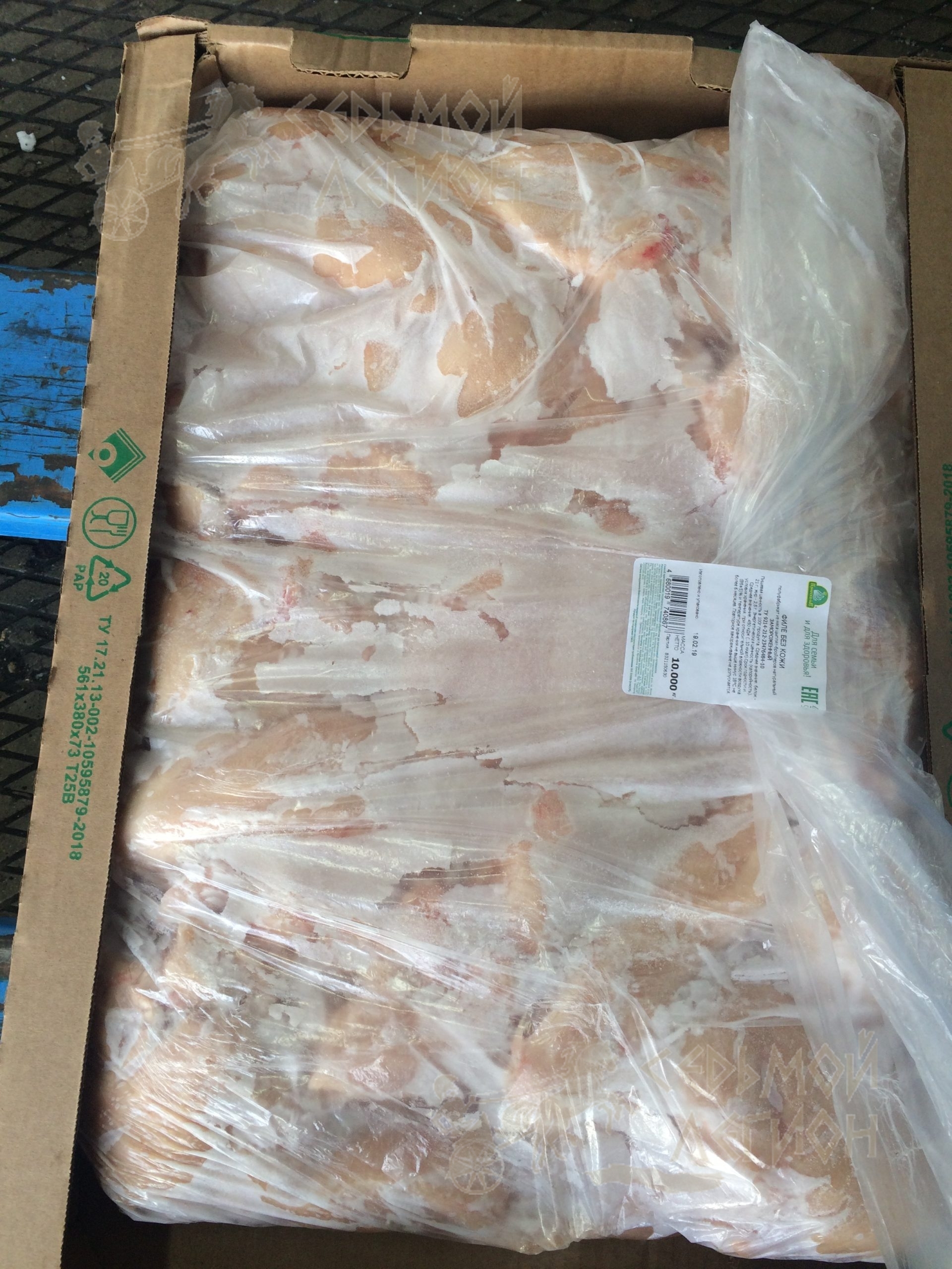 Пищевая ценность в 100г продукта. Среднее значение: белок-21 г; жир-2,5 г. Энергетическая ценность (калорийность). Среднее значение: 450 кДж (110 ккал). Cрок годности и условия хранения: 6 месяцев при температуре не выше минус 18°C и относительной влажности воздуха 80-90%.